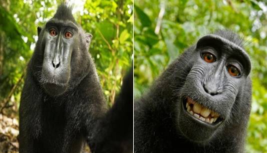 O autor destas fotos é o próprio fotografado: um macaco da espécie Nigra que roubou a câmera e fez estes autorretratos, inclusive rindo! Isto aconteceu há 4 meses em uma reserva florestal da Indonésia. O que mais me surpreende é o enquadramento da câmera e a imitação do gesto ao ser fotografado como forma de observação.